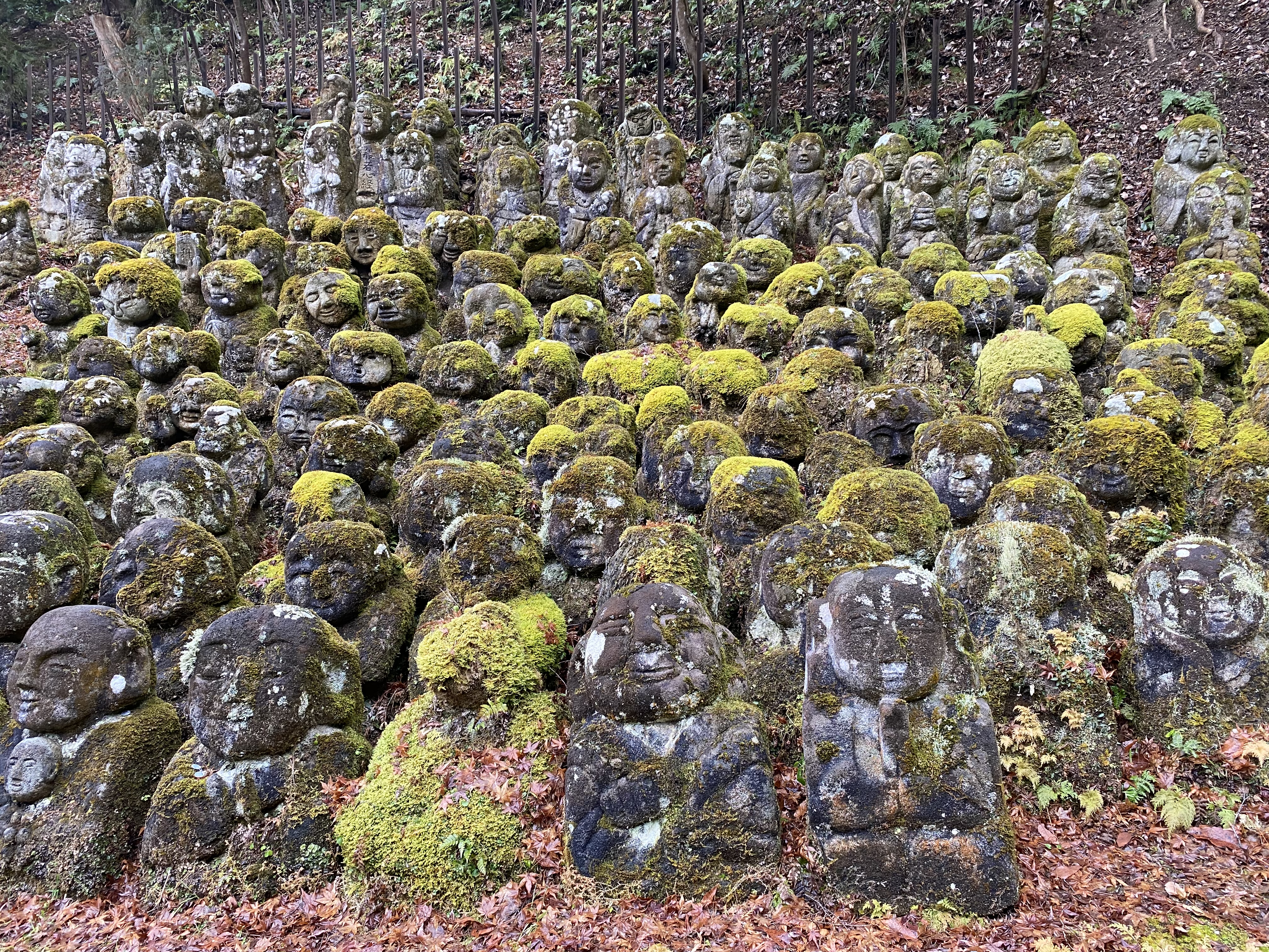 The Otagi Nenbutsu-ji Temple is home to hundreds of slightly haunting, moss-covered stone statues, each with a different face. They were created by students of the temple’s head priest, Kocho Nishimura, who also happened to be a sculptor.
